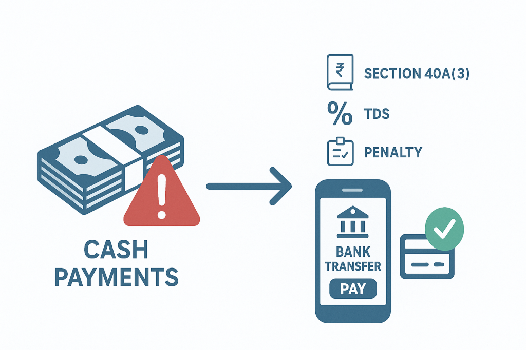 - Section 40A(3) — Any cash payment exceeding ₹10,000 to a single person in a day (other than exceptions) is not allowed as a business expense.